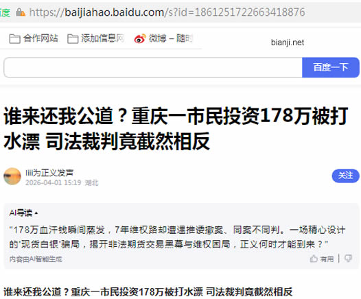 谁来还我公道?重庆一市民投资178万被打水漂 司法裁判竟截然相反
